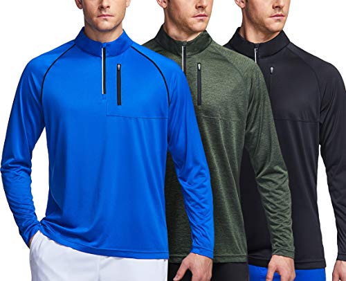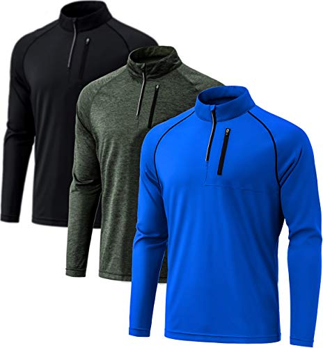 ATHLIO 3 Pack Men’s 1/4 Zip Athletic Pullover Long Sleeve Shirt