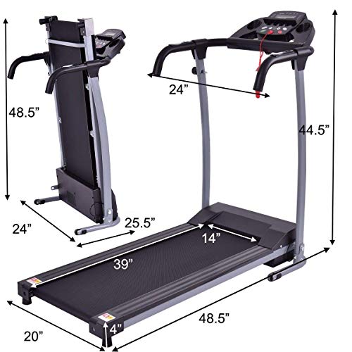 This Goplus treadmill is ideal for daily running workout fitness. Its space-saving foldable design does not sacrifice size with quality and will keep your treadmill workouts challenging and effective. Keep running and burn calories to keep fit and live a healthy life.