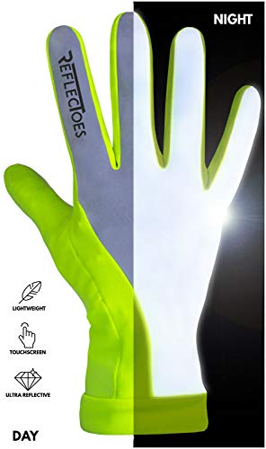 ReflecToes Reflective Running Gloves – Touchscreen – Lightweight Hi Vis Winter Running Gear Cold Weather Jogging at Night